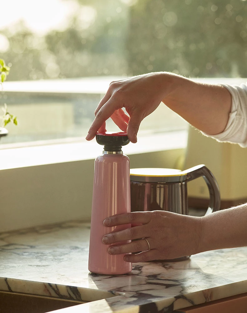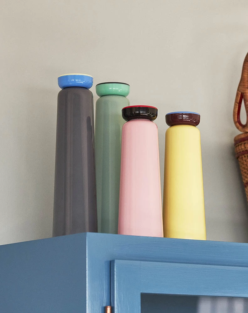 From the Sowden collection for HAY, following the same line of colors and materials. Crafted in stainless steel with a plastic screw lid, the functional design is suitable for containing hot and cold drinks. Keeps drinks hot for 12 hours and cold for 24 hours.