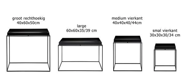 Deze Tray bijzettafel komt uit de collectie van het Deense merk HAY. Het ontwerp bestaat uit een metalen dienblad op een frame. Gebruik dit handige tafeltje naast je favoriete loungezetel of als nachttafel. Je kan het ook combineren met de andere formaten en kleuren uit de Tray collectie om in de zithoek te plaatsen. Materiaal: gepoederlakt staal Afmetingen: L30 x W30 x H34 cm Kleur: zwart (black) en wit (white) Onderhoud: schoonmaken met een vochtige doek Levertermijn van ongeveer 3 weken indien niet op voorraad. Het Deense label HAY werd opgericht in 2002 en staat voor duurzaam en betaalbaar design van meubelen en decoratie. De hedendaagse ontwerpen halen inspiratie uit de hoogdagen van het Deens design in de jaren 50 en 60. Wat wij zo leuk vinden aan de HAY collectie is de mogelijkheid om zelf de look van je meubel te bepalen: verschillende afmetingen, afwerkingen van hout en heel veel kleuren en stoffen.