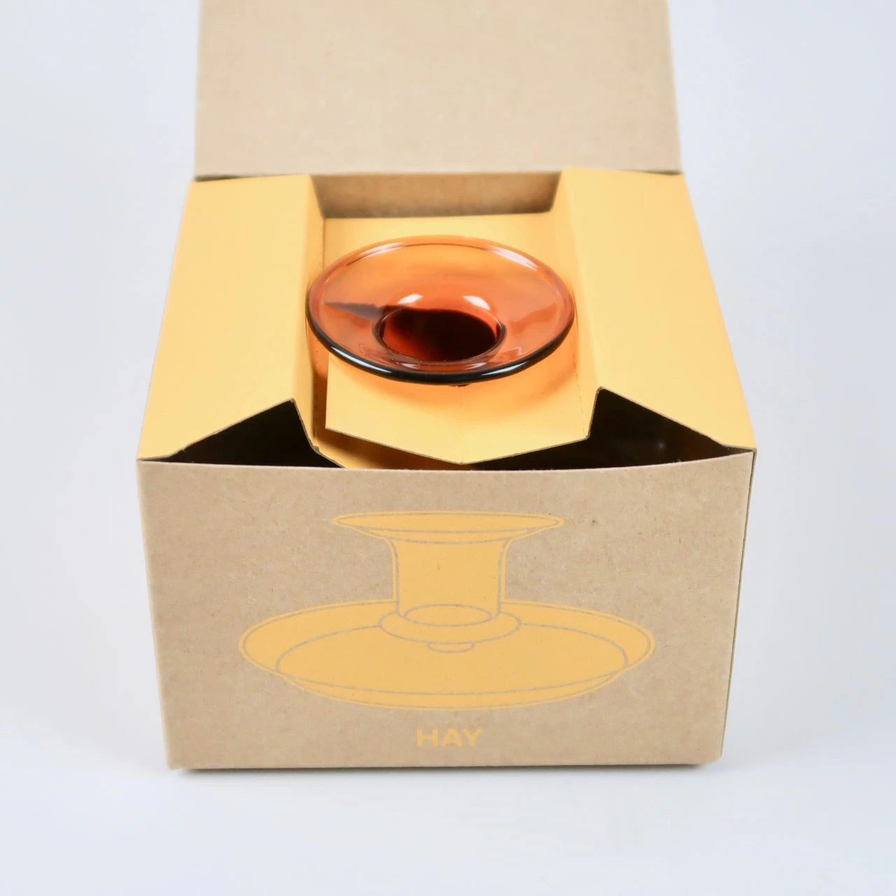 Comes in a HAY branded box. Takes a standard dinner candle. Small variations can occur from one piece to another.