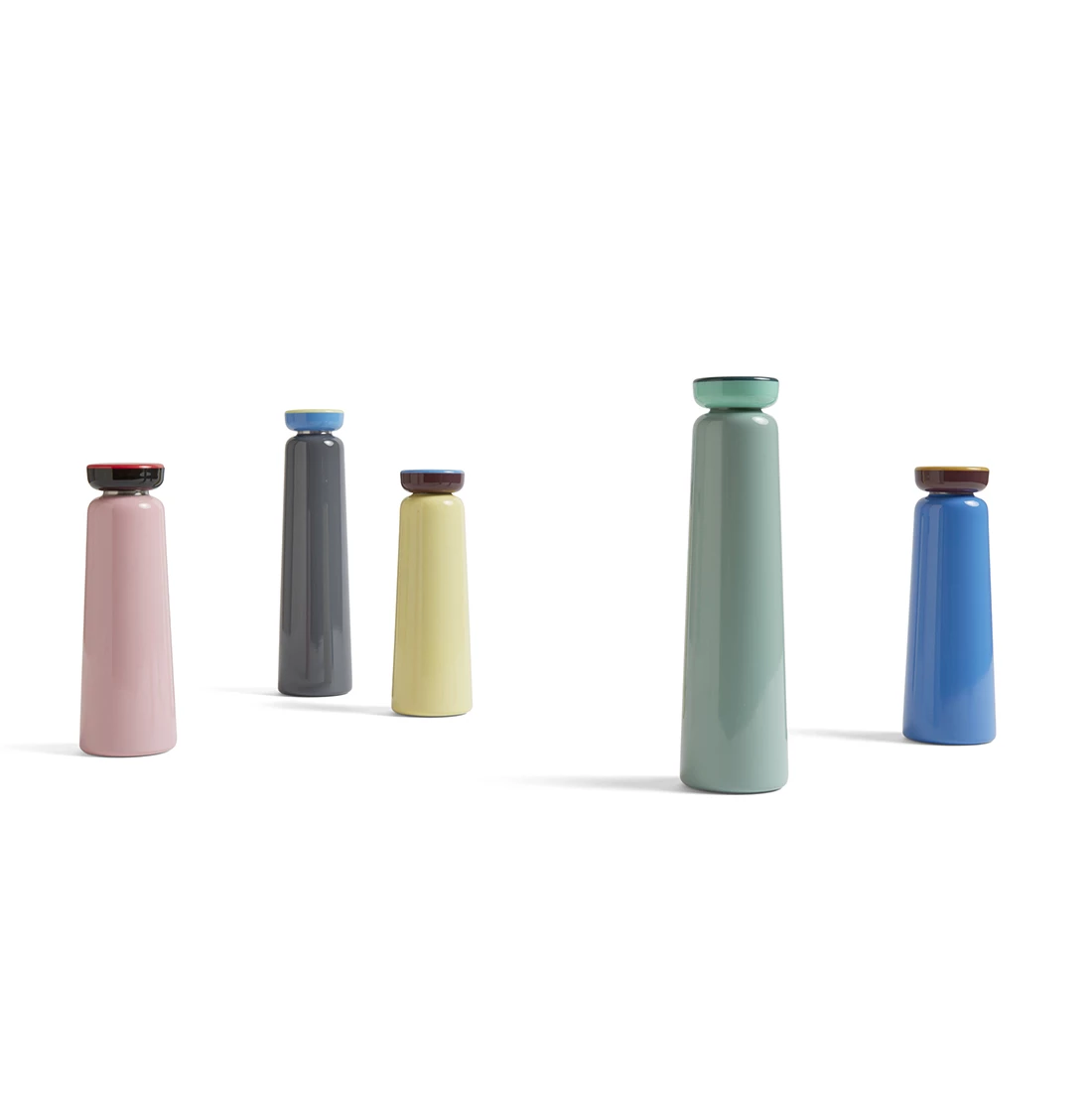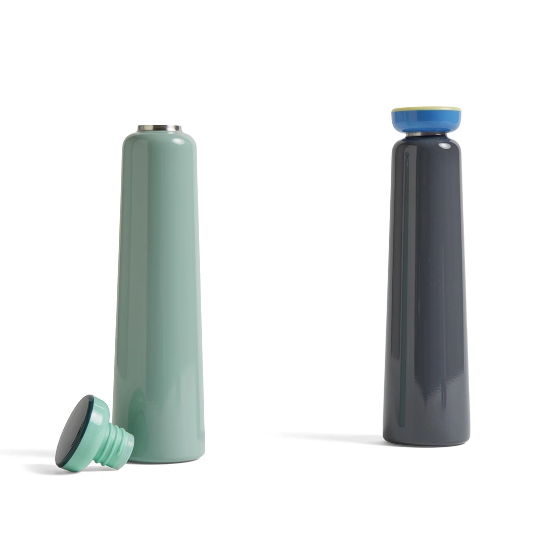 From the Sowden collection for HAY, following the same line of colors and materials. Crafted in stainless steel with a plastic screw lid, the functional design is suitable for containing hot and cold drinks. Keeps drinks hot for 12 hours and cold for 24 hours.