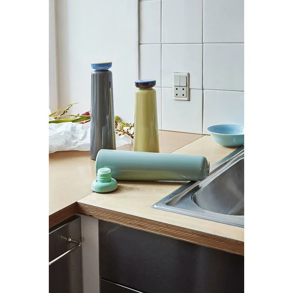 La bouteille thermos Sowden menthe (0,5 L) de chez Hay. Elle convient pour les boissons chaudes et froides ♥ La bouteille thermos Sowden menthe de la marque Hay a été conçu par le designer Georges Sowden. Décliné en plusieurs couleurs et plusieurs tailles inspirées du mouvement Memphis. La gourde isotherme existe également en couleur gris et en plus petit format (0,35L). L’avis de l’Atelier Kumo : Un objet design à emmener partout ! Dimensions : diamètre : 7 cm, hauteur : 26 cm Composition : acier inoxydable et polypropylène Couleur : menthe Contenance : 50 cl Poids : 0.350 kg Conseil : convient pour les boissons chaudes et froides Georges Sowden est un designer réputé. Il a reçu plusieurs prix prestigieux dont le Compasso d’oro. Dans les années 80 en Italie, il a participé à la fondation du mouvement Memphis dans lequel sont travail s’inscrit. Cette bouteille isotherme en acier inoxydable conservera vos boissons chaudes et froides dans tous vos déplacements. Son design épuré et ses couleurs tendances font de cette gourde un objet iconique. Son bouchon en polypropylène à vis vous garantira une étanchéité par faite dans tous vos déplacements.