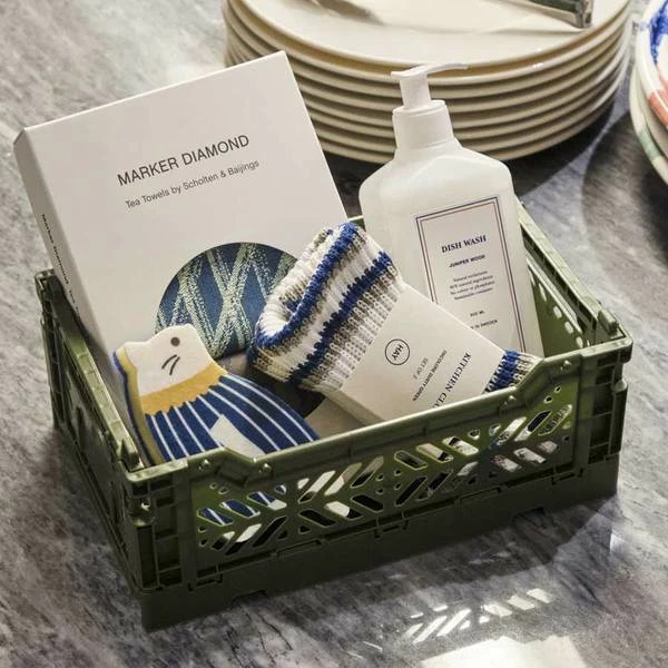 La cagette kaki de taille petite, de la marque Hay ♥ En plus d’être design, ces cagettes en plastique sont multifonctions et ont un système d’aération, qui leur permet de résister à l’eau. Repliables sur elles-mêmes, elles peuvent aussi bien s’empiler. Elle peuvent servir aux petits comme aux grands. Disponibles en différentes couleurs, n’hésitez pas à les combiner. Découvrez toute la gamme de cagettes Hay. L’avis de l’Atelier Kumo : Un indispensable pour organiser votre intérieur Dimensions : Longueur : 26,5 cm, largeur 17, hauteur : 10,5 cm Composition : Plastique