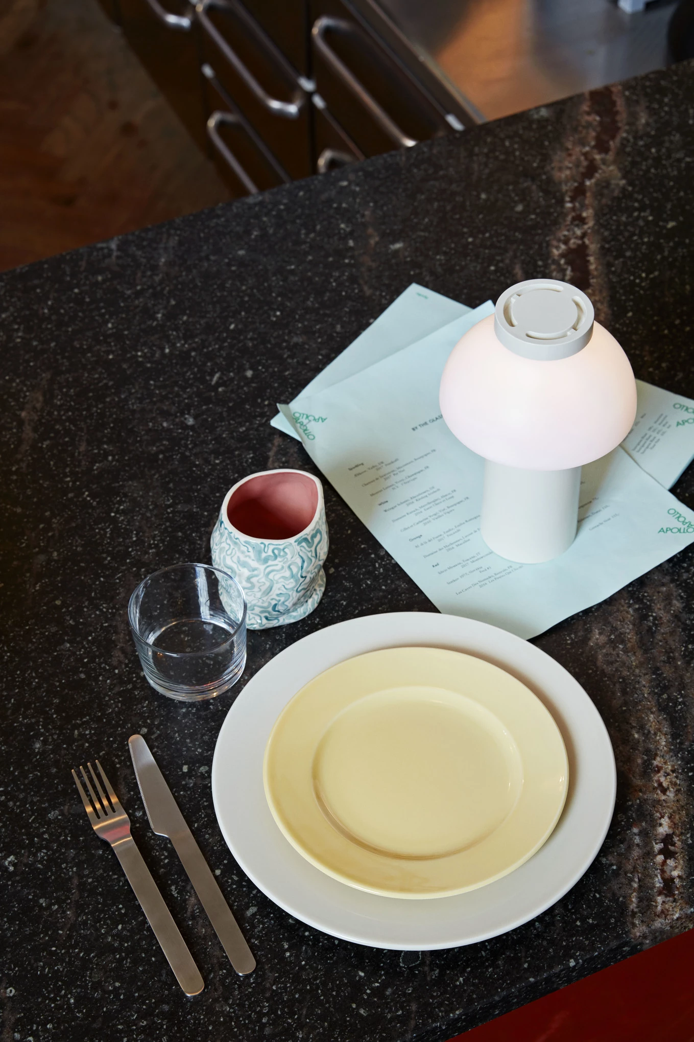 Pierre Charpin’s PC Portable Lamp is a refined and portable freestanding lamp for indoor and outdoor use. Constructed in robust plastic and featuring a matte scratch- and water- resistant finish, its battery-powered design gives the freedom and flexibility to move it anywhere. The light source is hidden from view by a polycarbonate diffuser, available with both downlight and ambient output options, depending on the desired use. The PC Portable Lamps are available in a variety of colour variants and are ideal for table lighting in domestic environments, as well as at cafés, restaurants and other public areas.