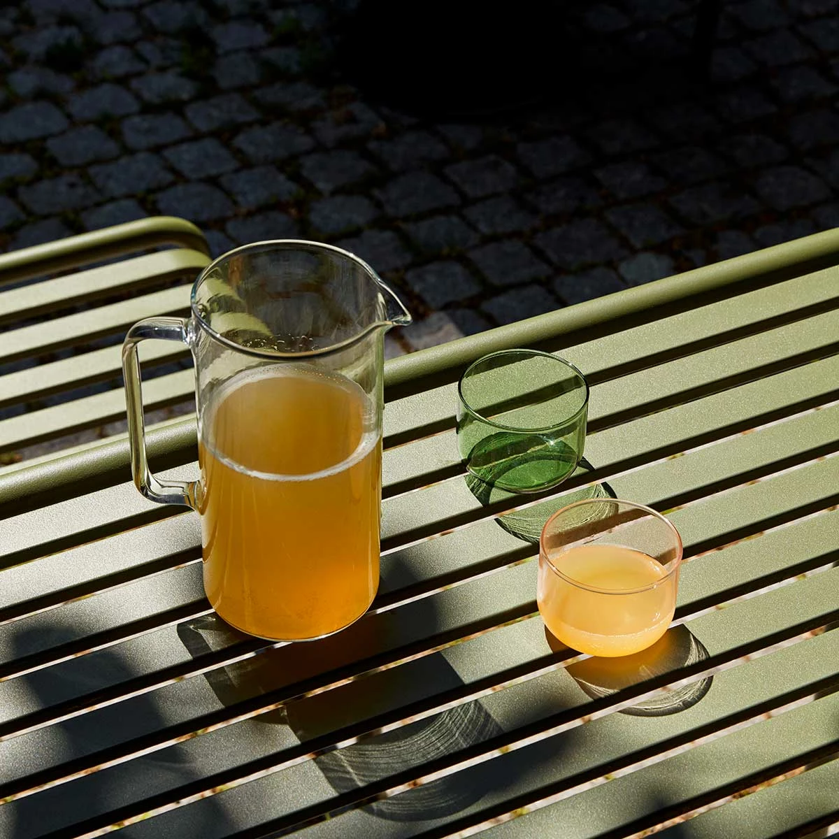 Borosilikatglas ist leichter, stärker und temperaturwechselbeständiger als normales Glas, was bedeutet, dass die Glaskanne von HAY extrem kalten und heißen Temperaturen standhalten kann. Größe: Ø 12 x Höhe 23,5 cm Füllmenge: 2 L Farbe: Klar Material: Borosilikatglas Minimalistischer Glaskrug von HAY.