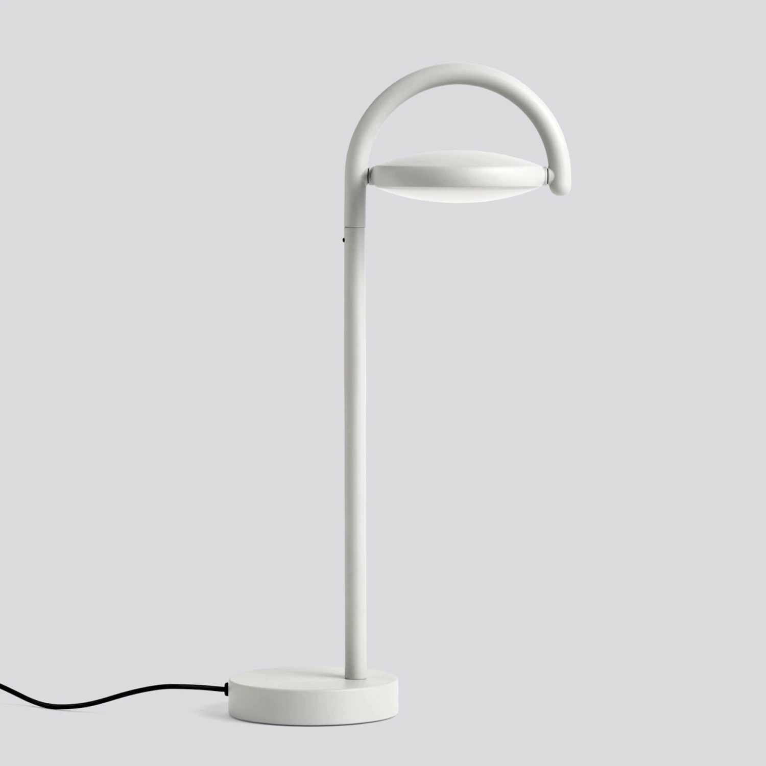 Inspired by the bent tubing around local street signs, design duo kaschkasch have created a family of table and floor lamps sharing the same arched silhouette. The light source comes from a tilting circular disc, which can be adjusted to create both an indirect ambient and direct task light beam. The lamp body is crafted from powder coated die cast aluminium and steel, and the light source is an injection moulded polycarbonate opalescent lens that conceals a flat panel of light. Both lamp designs are available in different colours and are suitable for a variety of private and corporate settings.