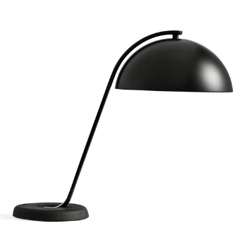 Designed by Lars Beller Fjetland for HAY, Cloche Table Lamp plays with visual imbalance to create a distinct shape. It features a domed shade, an angled, powder-coated aluminium arm, and an off-centre, cast-iron base. The shade is available in different colours and finishes, creating a decorative and directional lighting solution for a variety of office and home settings.