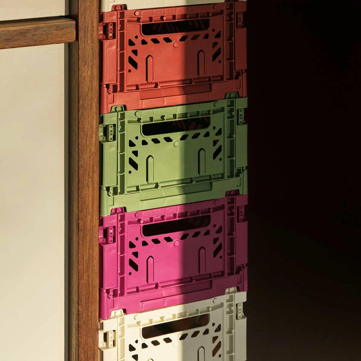 Color Crate ist eine Serie multifunktionaler Aufbewahrungsboxen der dänischen Designmarke HAY in verschiedenen Farben und Größen. Die belüfteten und stapelbaren Kisten sind unbedenklich für die Verwendung mit Lebensmitteln und zu 100 % recycelbar – für platzsparendes und farbenfrohes Verstauen. Größe: S – Länge 26,5 x Breite 17 x Höhe 10,5 cm Material: Polypropylen Farbe: terracotta Storage Box von HAY in terracottafarben aus 100% recyceltem Polypropylen.