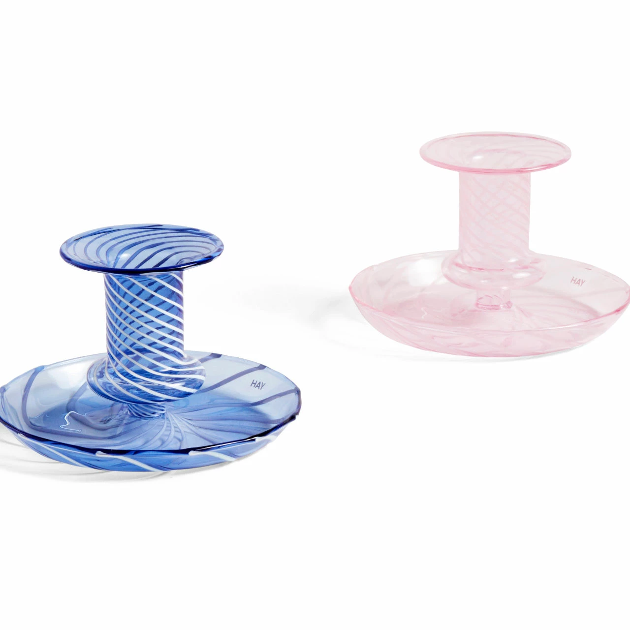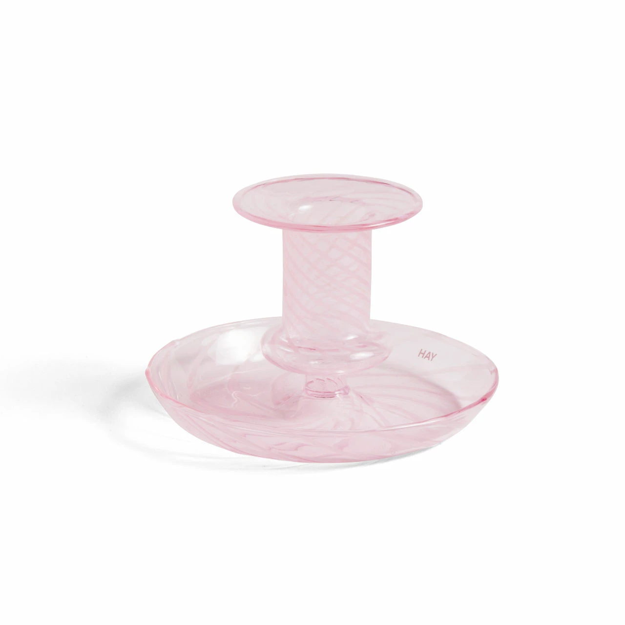 This glass candlestick is made by the Danish design brand HAY. It features a tray around the base of the candle holder which enables both the capture of any wax that drips from the candle and also provides a platform from which the candlestick can be gripped and moved from place to place.