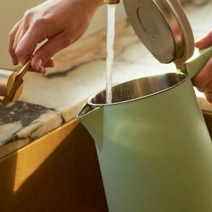 El hervidor es muy sencillo de limpiar y cuenta con un asa de dimensiones generosas, para poder agarrarlo y servir el agua a través del pico que ofrece en su extremo.