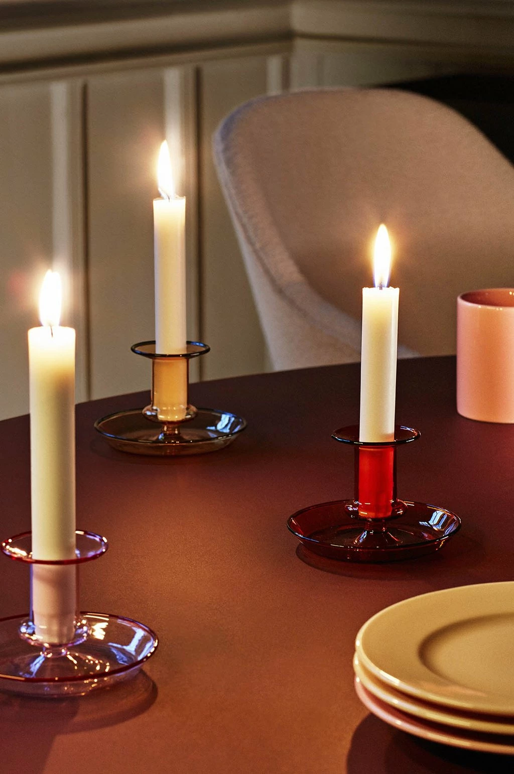 These beautiful candle holders are made of coloured borosilicate glass with a “tinted” rim which adds definition and contrast. They are elegant yet disctintive and will add a soft, translucent drop of colour to your interior. Borosilicate glass.