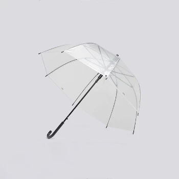 Canopy umbrella has a see-through dome of waterproof POE fabric and black handle and trim for good protection in wet weather.