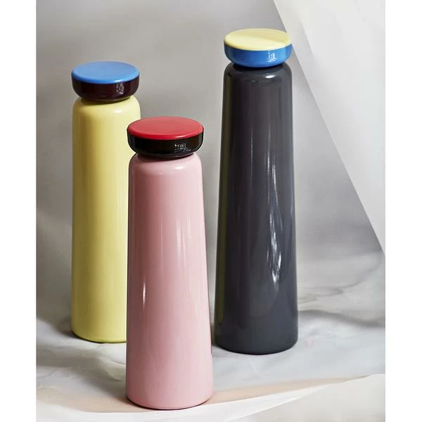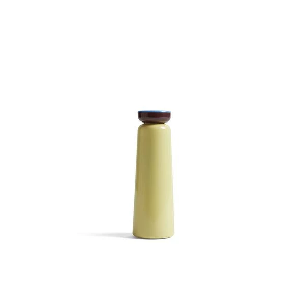 La bouteille thermos Sowden jaune (0,35 L) de chez Hay. Elle convient pour les boissons chaudes et froides ♥ La bouteille isotherme Sowden jaune de 0,35 L est le fruit d’une collaboration entre le designer Georges Sowden et la marque Hay. Cette gourde dont le design s’inspire du mouvement Memphis vous permettra de transporter vos boisons chaudes pendant 12 heures et vos boissons froides pendant 24 heures dans vos déplacements du quotidien. Le designer Georges Sowden est une figure iconique du mouvement Memphis. Existe également en couleur rose, bleu et en plus grand format ici (0,5L). L’avis de l’Atelier Kumo : Un compagnon utile et élégant dans vos déplacements du quotidien ! Dimensions : diamètre : 7 cm, hauteur : 26 cm Composition : acier inoxydable et polypropylène Couleur : jaune Contenance : 35 cl Poids : 0.350 kg Conseil : convient pour les boissons chaudes et froides De part ses lignes élancées et ses couleurs tendances cette jolie bouteille Thermos Sowden égaillera votre quotidien. Le corps de la bouteille Thermos est en acier inoxydable. Son bouchon à vis en polypropylène assure une étanchéité parfaite du produit.