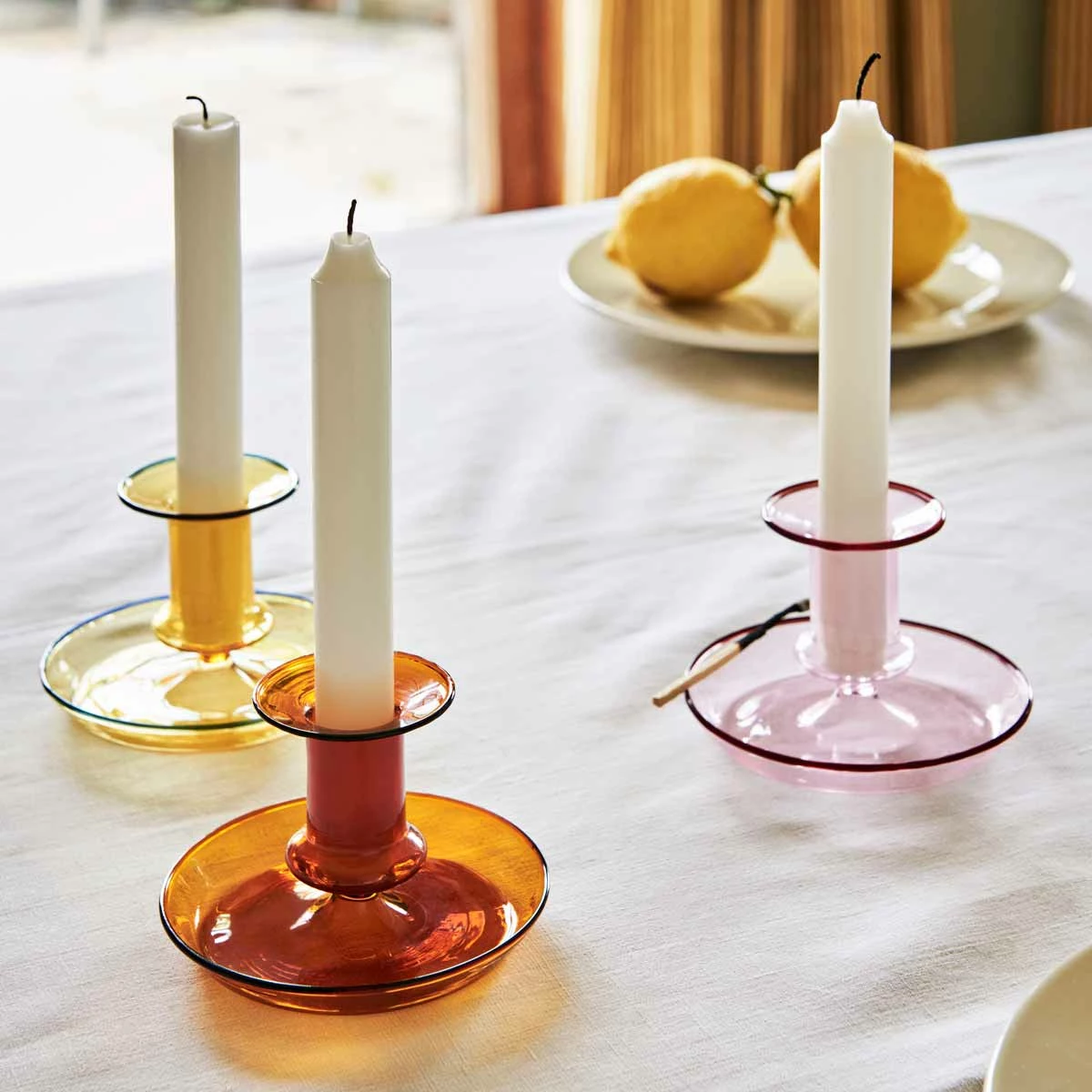Farbiges Borosilikatglas schafft eine elegante und unverwechselbare Art, Kerzen in HAYs Flare Candleholder zu präsentieren. Erhältlich mit kontrast- oder tonal getöntem Rand oder Spiralmuster in einer Auswahl an Farben. Ideal für die Verwendung mit HAY-Kerzen auf einer Fensterbank oder einem Tisch, um eine Atmosphäre in Ihrem Zuhause zu schaffen. Größe: Ø 11 x Höhe 7,5 cm Farbe: Amber/bernsteinfarben Material: Borosilikatglas Stylischer Flare Kerzenhalter von HAY in amber.