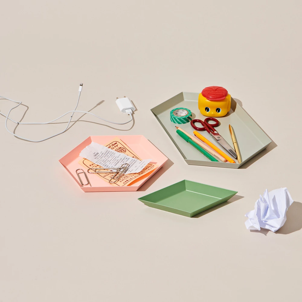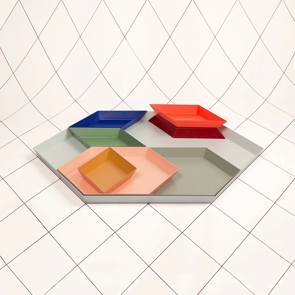 Clara von Zweigbergk‘s background as a graphic designer is clearly evident in her Kaleido tray collection for HAY, where her intuitive sense of colour combination manifests itself in a myriad of shapes and shades. This series of steel, geometrically-shaped trays can be used individually as bursts of unexpected colour or stored inside each other to create functional and imaginative constellations.