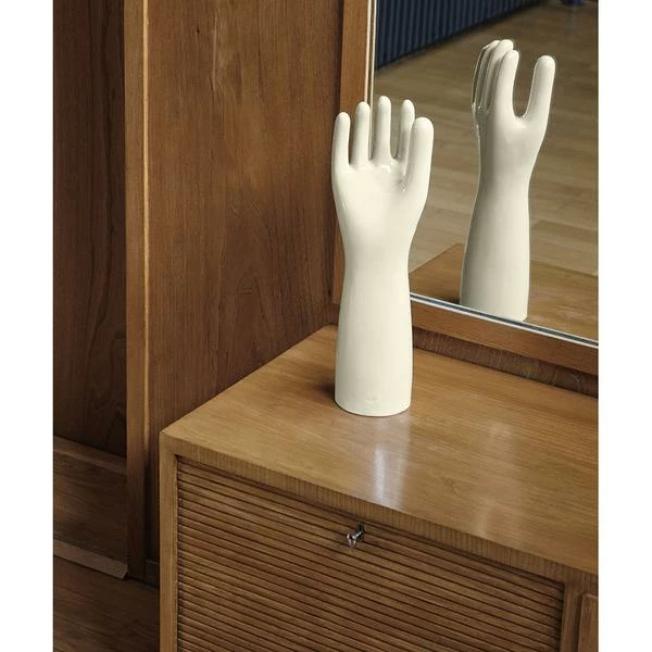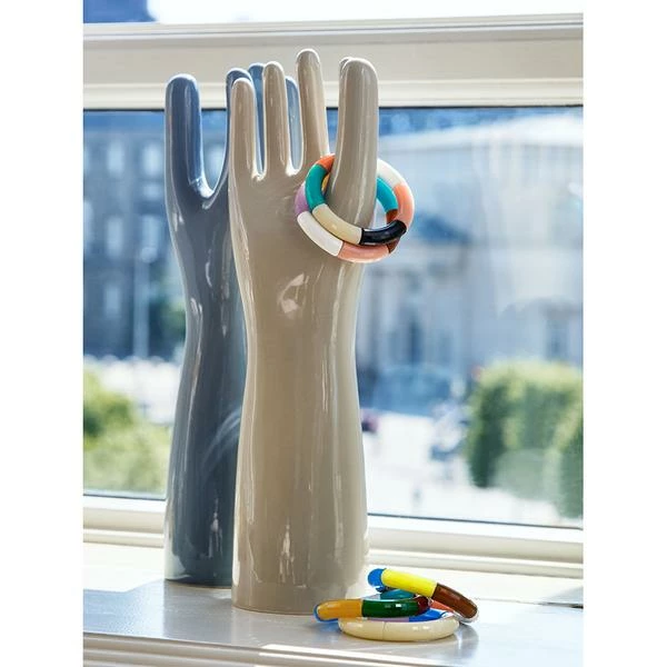 La main décorative couleur beige de la marque Hay ♥ Un bel objet décoratif au design élégant et sculptural. Fabriqué en grès et fini à la main, chaque Deco Hand a une qualité artistique unique en son genre qui le rend parfait pour être exposé sur n’importe quelle table ou étagère de la maison. Ce produit est multifonctions, il peut être utilisé comme élément de décoration, ranger vos bijoux, etc. Cette main à la finition brillante, reflétera la lumière dans votre intérieur. Cette main est également disponible en couleur bleu. L’avis de l’Atelier Kumo : apporter une touche décalée à votre intérieur ! Composition : grès Dimensions : longueur : 10,5 cm, hauteur : 38,5 cm Poids : 1,260 kg Couleur : beige