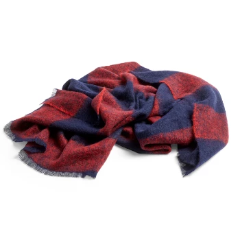 With its luxurious mohair-merino wool blend, HAY’s Mohair blanket has a thick, tufted texture in contrast stripes and is finished with fringed ends. Available in different colour combinations.