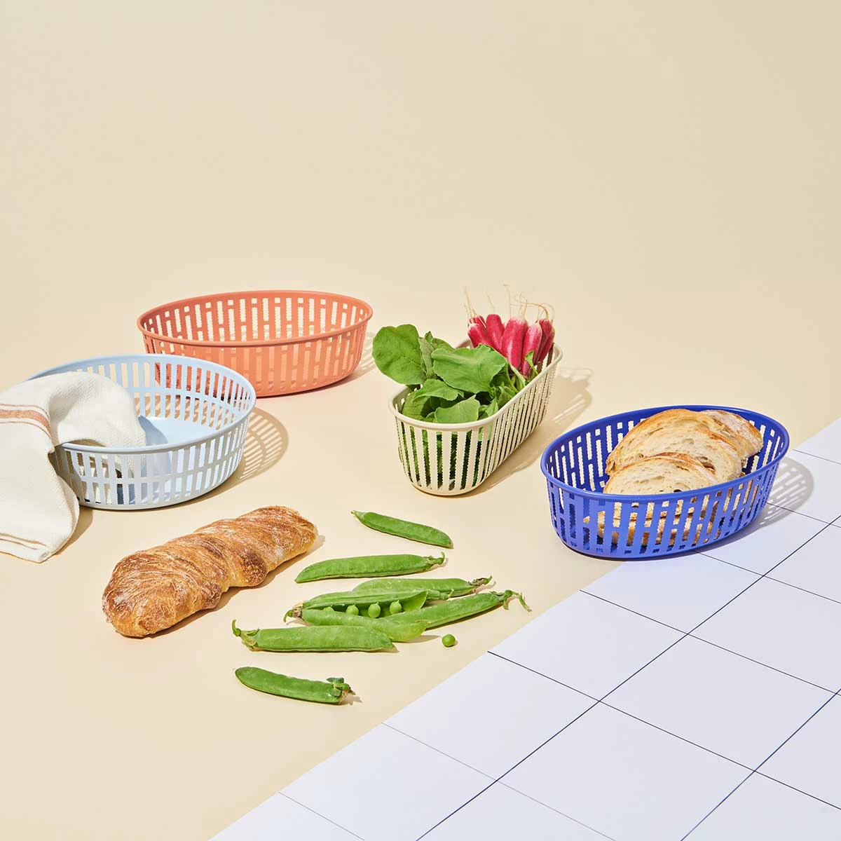 Inga Sempés Serie von Metallkörben umfasst mehrere Formen mit unterschiedlichen Ausschnitten, die jeweils mit unregelmäßigen gezackten Zähnen versehen sind, um ein unverwechselbares Erscheinungsbild zu schaffen. Konzipiert als Brotkorb, aber auch zur Aufbewahrung verschiedener Gegenstände in verschiedenen Räumen geeignet. Die Körbe von HAY sind in mehreren Farben erhältlich und lebensmittelecht. Größe: Breite 16 x Länge 25 x Höhe 7,5 cm Farbe: Rostfarben Material: Stahl Bunte Körbe von HAY für Lebensmittel oder andere Kleinigkeiten.