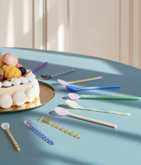 HAY’s collection of Glass Spoons add a decorative twist to a kitchen essential. Handmade in elegant designs offering different colors, sizes, and shapes, the spoons can be used for spices, salt, tea/coffee, or purely for decoration.