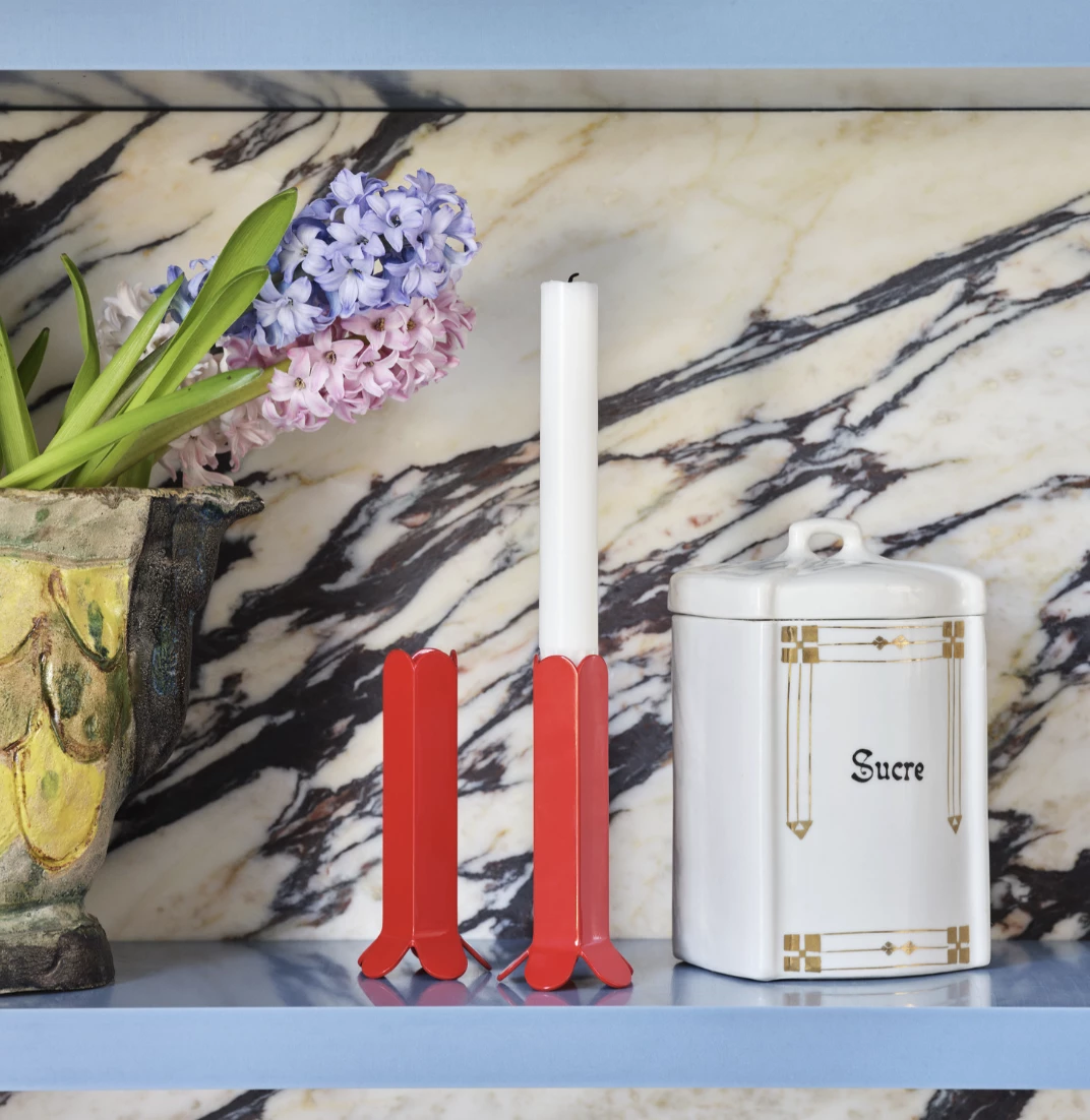 Made in aluminium and steel, Arcs Candleholder is available in two heights with different colour options.