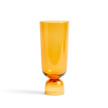 The Large Amber Bottoms Up Vase comes from designer Ingrid Aspen. It is crafted in amber coloured glass and features an elegant neck balanced upon a domed base.
