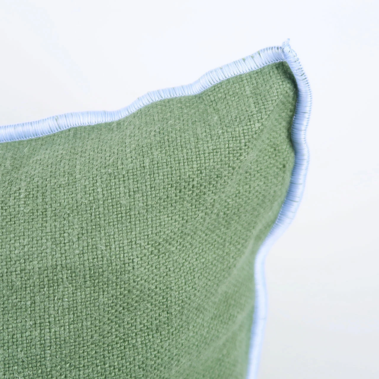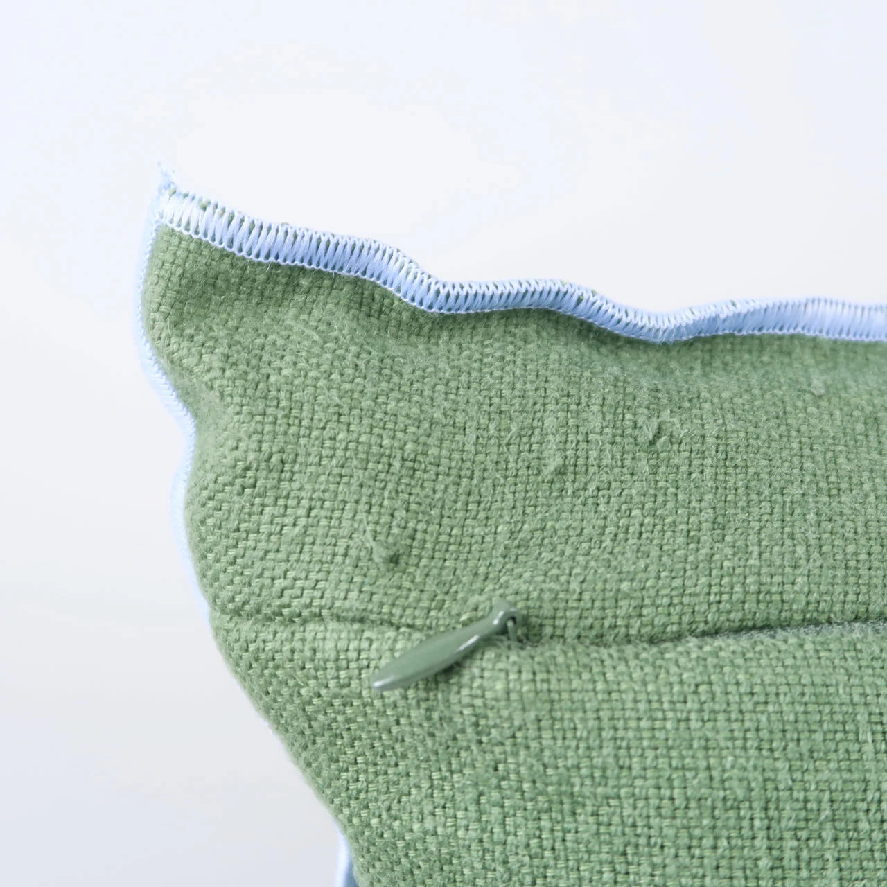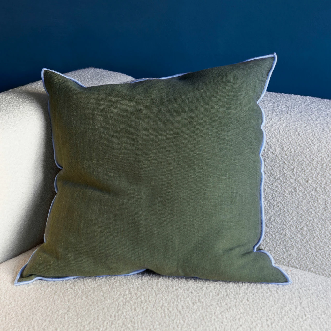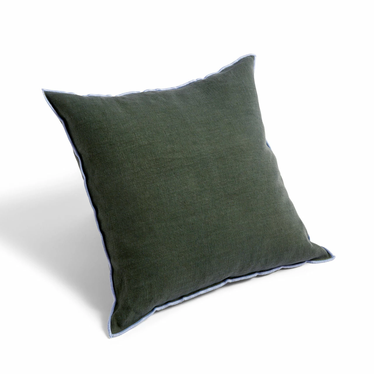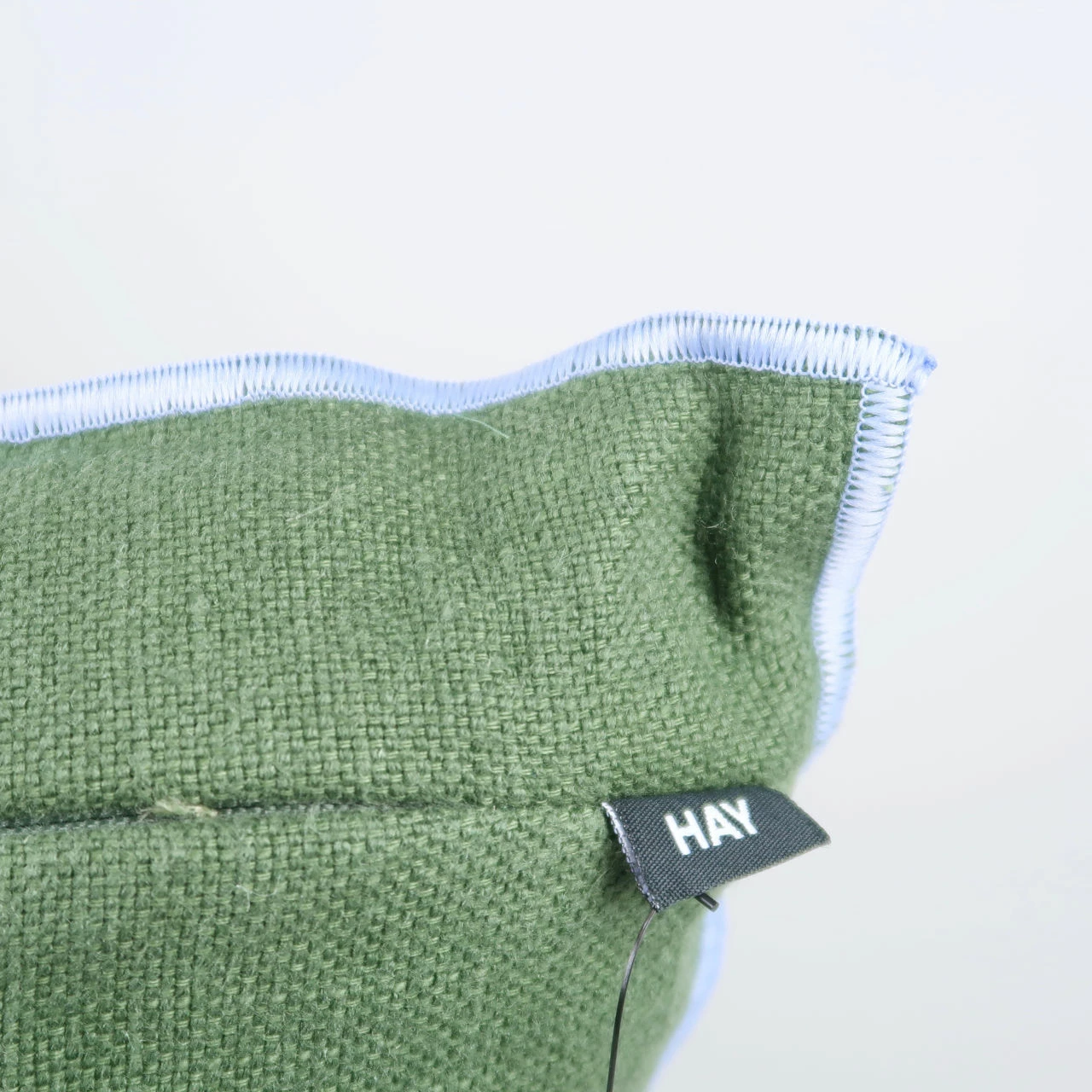 This cushion is made by HAY and the external fabric cover is a 75% linen, 25% cotton mix. It has a hidden zip closure on the reverse of the cushion with a colour matched zip and a small discrete HAY logo tag on the reverse as well.