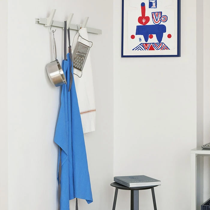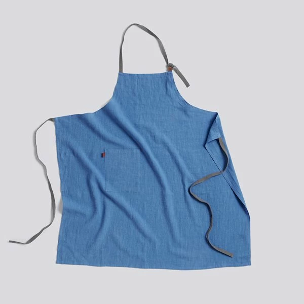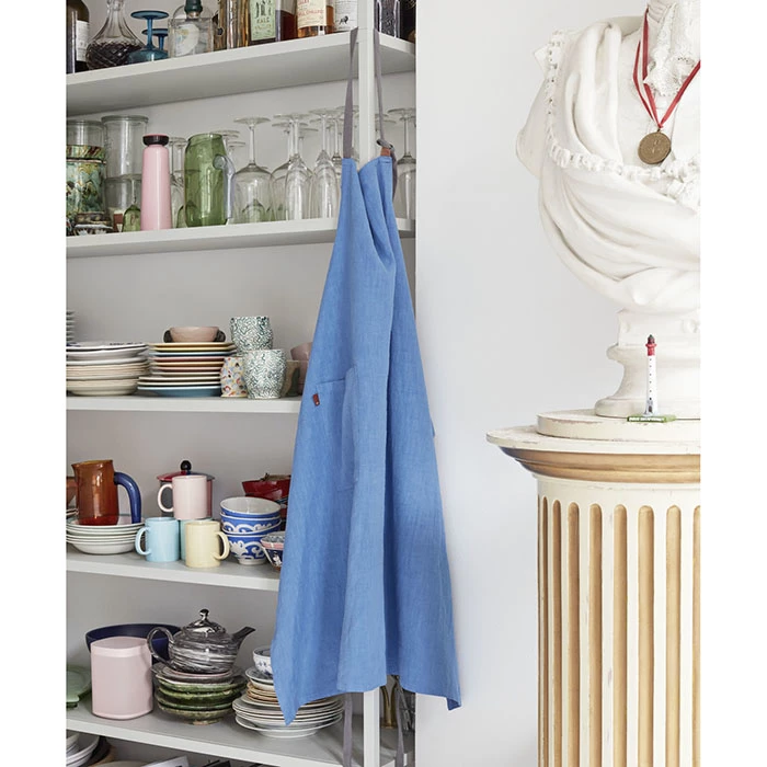 This apron is designed to protect your clothes when cooking. The Wrap from Hay is a classic apron, with a front pocket and contrast tie fastenings at the neck and back. It is made in a cotton-linen blend.
