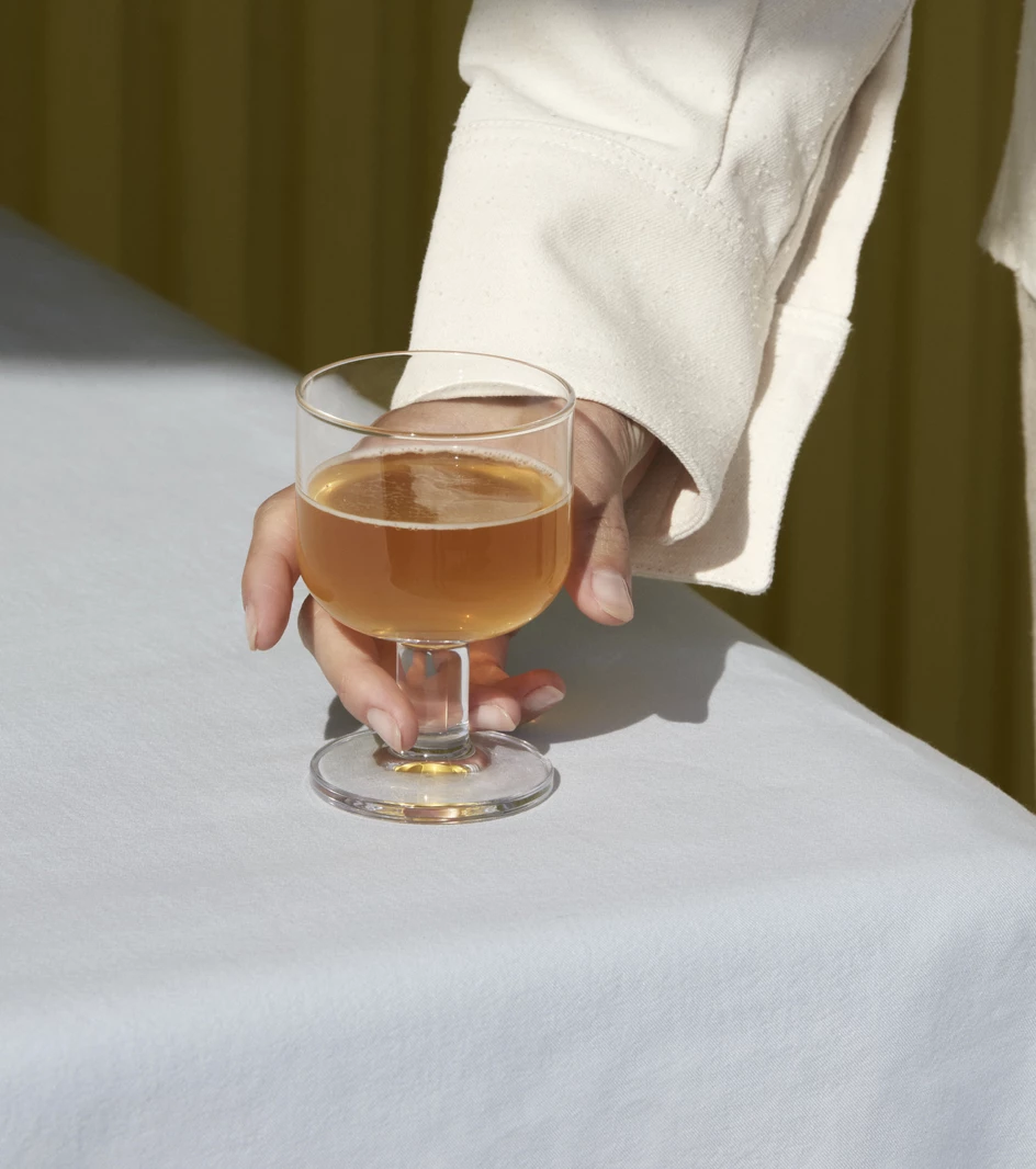 Made of durable tempered glass, the Tavern Glass is a versatile choice for serving wine, cocktails, or snacks. It’s dishwasher safe and available in three sizes.