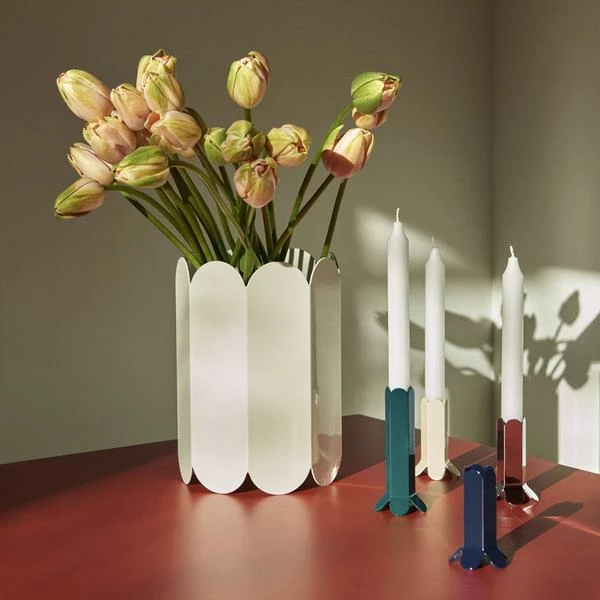 Conçu par le duo de designers belge Muller Van Severen pour la marque Hay. Arcs est une série de conceptions d’éclairage et d’objets décoratifs formés par une chaîne continue d’arcs incurvés qui forment un seul élément. L’expression géométrique du vase Arcs blanc est idéale pour créer de somptueuses combinaisons avec vos bouquets ou avec de simples branches décoratives. Découvrez les chandeliers Arcs de la même collection. (arrive très bientôt!) L’avis de l’Atelier Kumo : créer un jeu de lumière captivant avec ce vase miroir ! Dimensions : diamètre : 17 cm, hauteur : 25 cm Couleur : blanc Composition : acier inoxydable Designer : Muller Van Severen Poids : 2,3 kg